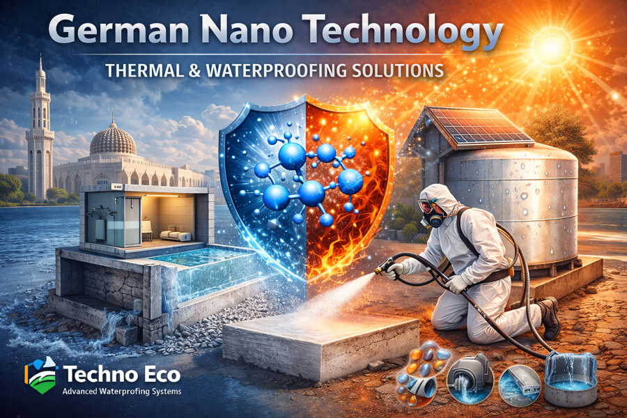 With the increasing challenges of extreme heat, humidity, and water leakage, the demand for professional waterproofing for buildings has become essential across the Sultanate of Oman. At Techno Eco, we deliver next-generation solutions through German Nano Technology for thermal and waterproofing, offering unmatched performance, durability, and long-term